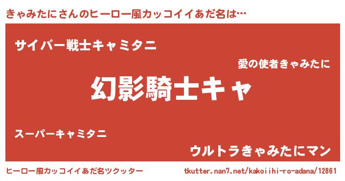 | 男性向けラノベタイトル風あだ名 | 『転生したらきゃみたにだった件』 |