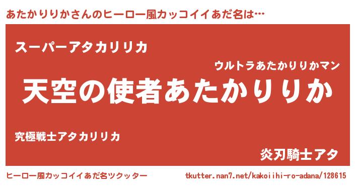 | 男性向けラノベタイトル風あだ名 | 『うちのあたかりりかが世界を掌握している!』 |