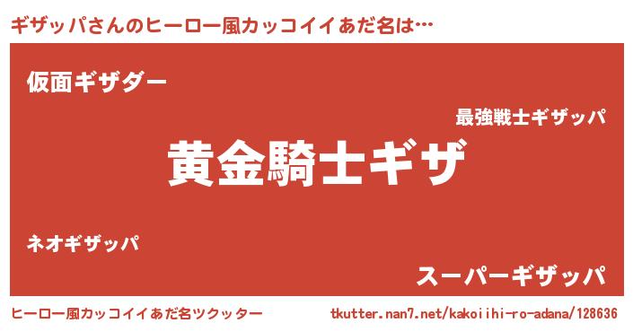 | 男性向けラノベタイトル風あだ名 | 『ダンジョンにギザッパを求めるのは間違っているだろうか』 |