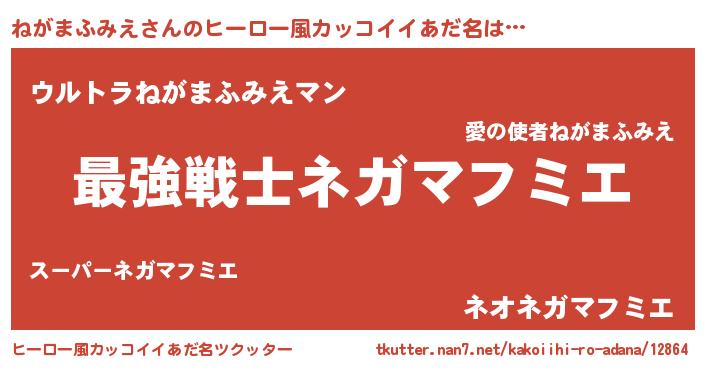 | 意味不明あだ名 | 『自称ねがまふみえ』 |