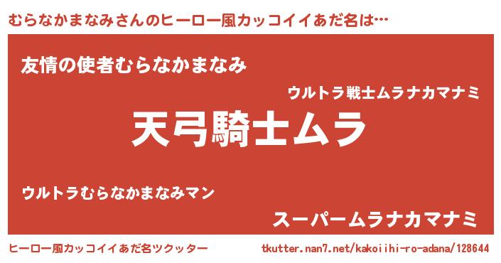 | ポケモン風あだ名 | 『ヒムラナカマナミ』『ムラゴンZ』 |