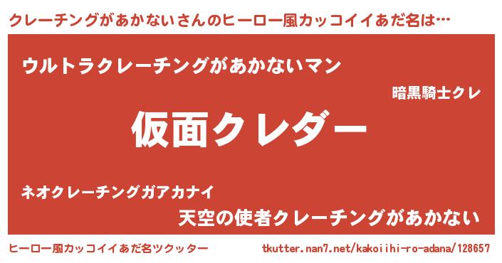| 意味不明あだ名 | 『住所不定無職クレーチングがあかない(3歳)』 |