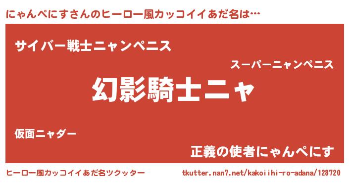 | 男性向けラノベタイトル風あだ名 | 『にゃんぺにすの嫁は女の子じゃないと思った?』 |
