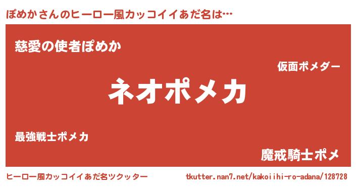 | 男性向けラノベタイトル風あだ名 | 『ぽめかという概念が存在しない退屈な世界 』 |