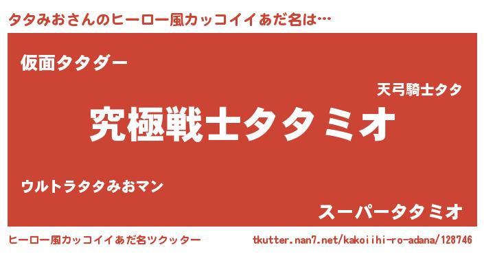 | 男性向けラノベタイトル風あだ名 | 『Re:タタみおから始める異世界生活』 |