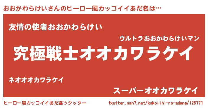 | 伝説のあだ名 | 『救世主となる技術者おおかわらけい』 |