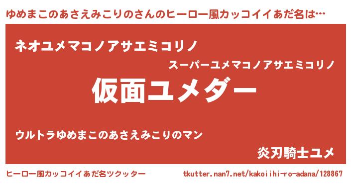 | 男性向けラノベタイトル風あだ名 | 『この素晴らしい世界にゆめまこのあさえみこりのを!』 |