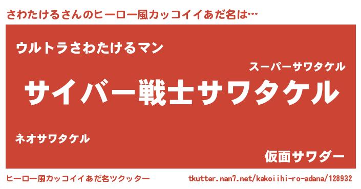| 男性向けラノベタイトル風あだ名 | 『Re:さわたけるから始める異世界生活』 |
