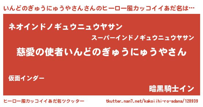| 女子向けラノベタイトル風あだ名 | 『いんどのぎゅうにゅうやさん恋絵巻』 |