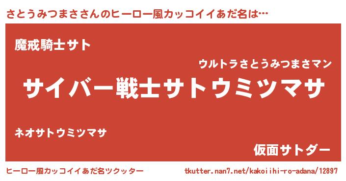 | 女子向けラノベタイトル風あだ名 | 『さとうみつまさの玉の輿計画!』 |