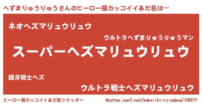 | 男性向けラノベタイトル風あだ名 | 『へずまりゅうりゅうの憂鬱』 |
