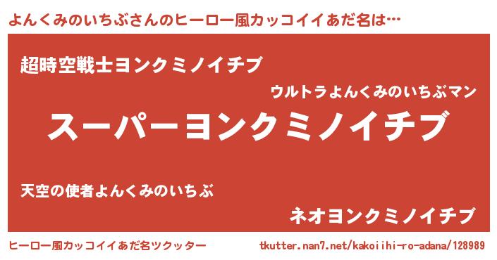 | 男性向けラノベタイトル風あだ名 | 『よんくみのいちぶの憂鬱』 |