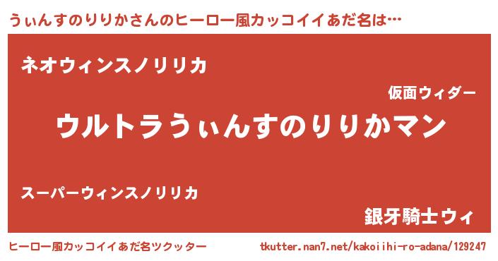| 欧米人風あだ名 | 『うぃんすのりりかクリステル』 |