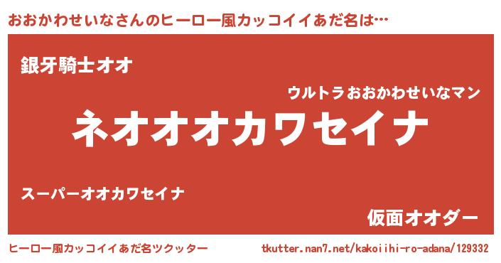 | ポケモン風あだ名 | 『ゼニオオ』『ヒオオカワセイナ』 |