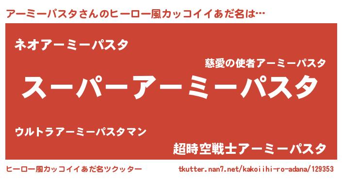 | ヘコむあだ名 | 『アーにゅー』『アーミーパスタ(震え声)』 |