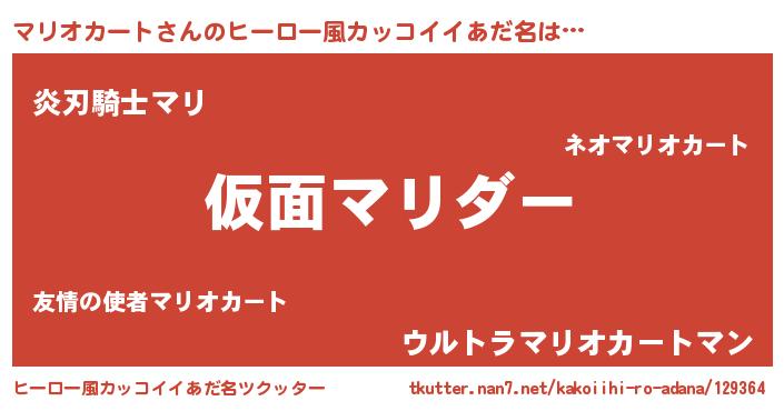 | 男性向けラノベタイトル風あだ名 | 『魔弾の王とマリオカート』 |