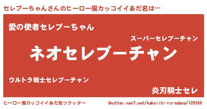セレブーちゃんさんのヒーロー風カッコイイあだ名をツクッター!