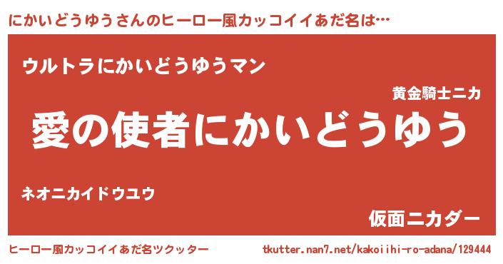 | 男性向けラノベタイトル風あだ名 | 『にかいどうゆうに滅ぼされるだけの簡単なお仕事です』 |