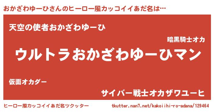 | 男性向けラノベタイトル風あだ名 | 『うちの娘の為ならば、俺はもしかしたらおかざわゆーひも倒せるかもしれない。』 |
