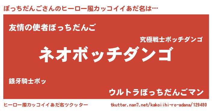 | 男性向けラノベタイトル風あだ名 | 『ぼっちだんごという概念が存在しない退屈な世界 』 |