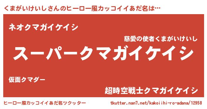 | 男性向けラノベタイトル風あだ名 | 『くまがいけいしの憂鬱』 |