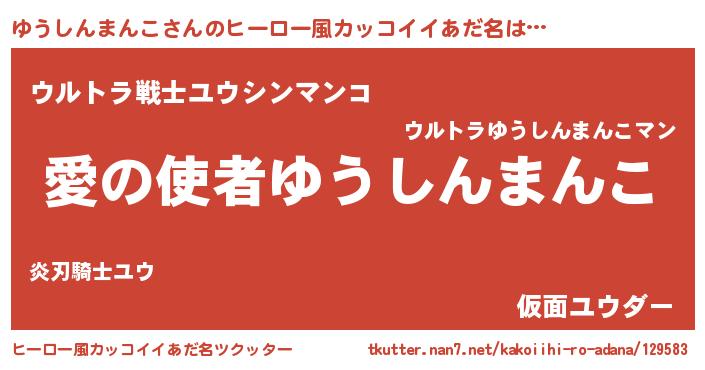 | 男性向けラノベタイトル風あだ名 | 『おまえをオタクにしてやるから、俺をゆうしんまんこにしてくれ! 』 |