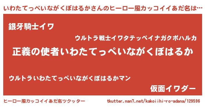 | 女子向けラノベタイトル風あだ名 | 『いわたてっぺいながくぼはるか夫妻のなれそめ』 |