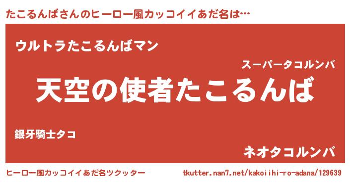 | 男性向けラノベタイトル風あだ名 | 『たこるんば~年齢イコール彼女いない歴の魔法使い~』 |