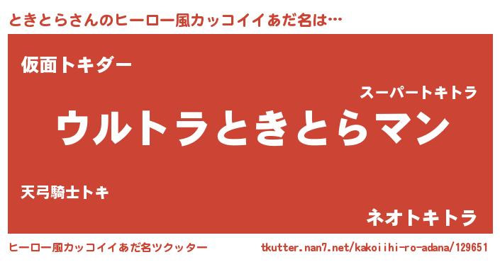 | 男性向けラノベタイトル風あだ名 | 『トキトラスレイヤー』『緋弾のトキトラ』 |