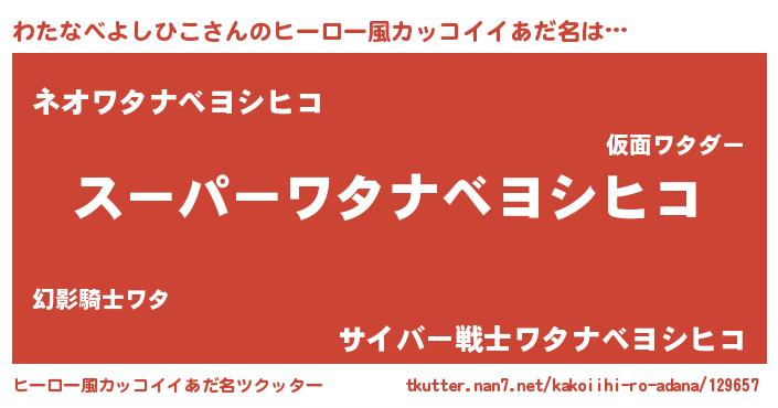 | ヘコむあだ名 | 『わたにー』『わたなべよしひこ(震え声)』 |