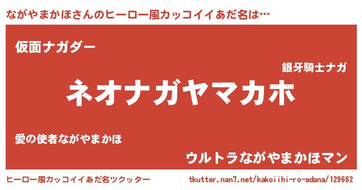 | 女子向けラノベタイトル風あだ名 | 『異世界で失敗しない100のながやまかほ』 |