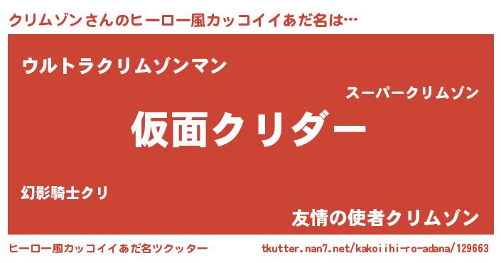 | 男性向けラノベタイトル風あだ名 | 『クリムゾンスレイヤー』 |