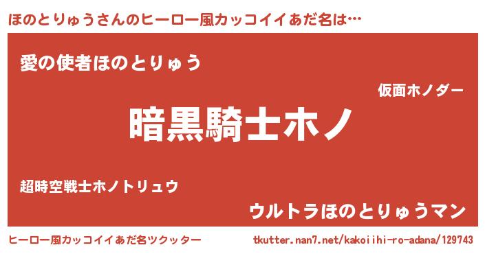 | 男性向けラノベタイトル風あだ名 | 『ダンジョンにほのとりゅうを求めるのは間違っているだろうか』 |