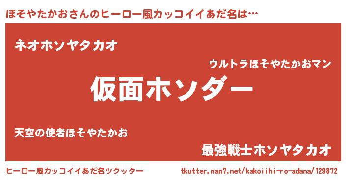 | 伝説のあだ名 | 『古より伝わる勇者ほそやたかお』 |