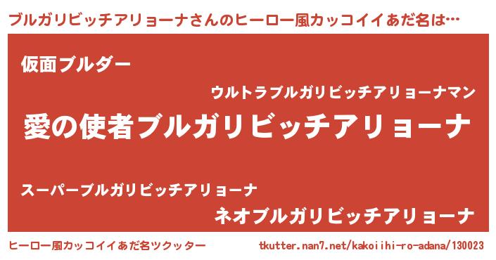 | 欧米人風あだ名 | 『アンジェラ・ブルガリビッチアリョーナ』 |