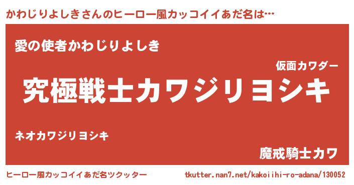 かわじりよしきさんのヒーロー風カッコイイあだ名をツクッター!