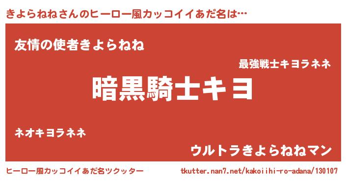| 胡散臭い通販商品みたいなあだ名 | 『信頼と実績のネックレス…その名も「きよらねね」』 |