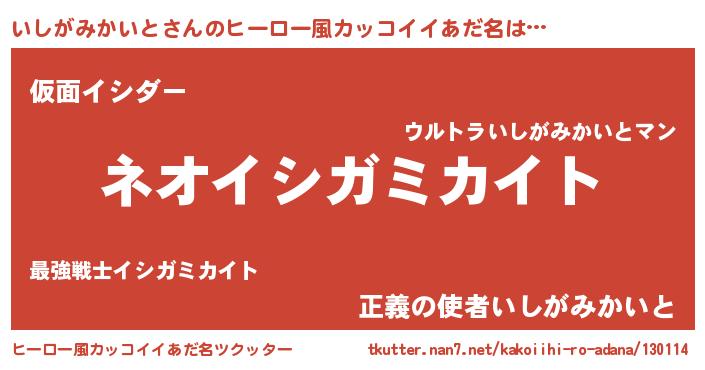 | ヘコむあだ名 | 『いしがみかいと(遠い目)』『酢こんぶ』 |