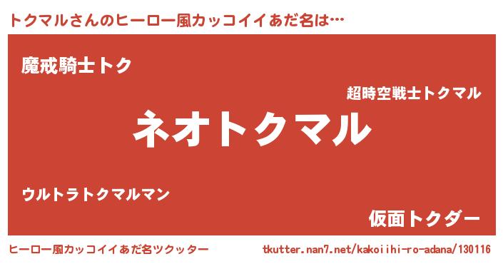 | ヘコむあだ名 | 『トクマル(苦笑)』『トクっぺ』 |