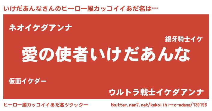 | 女子向けラノベタイトル風あだ名 | 『いけだあんなの玉の輿計画!』 |