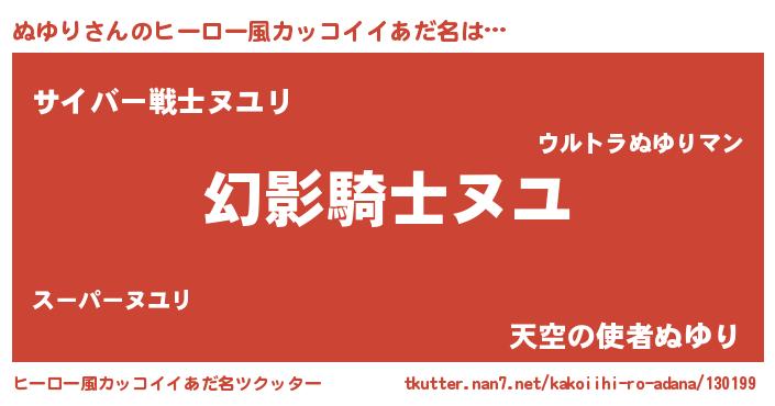 | 意味不明あだ名 | 『とにかく怪しいぬゆり』『自称ぬゆり』 |