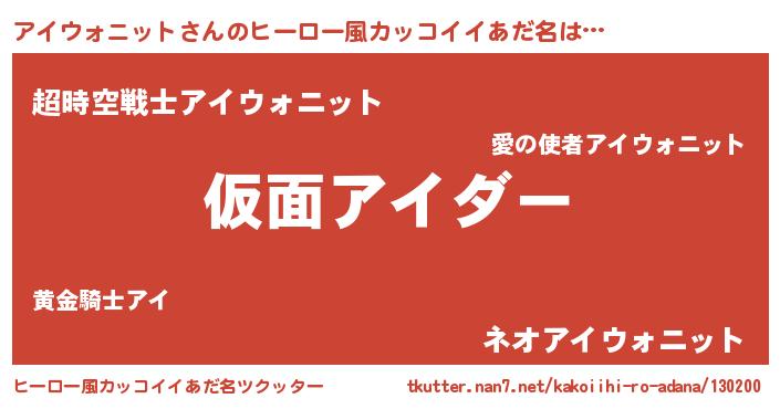 | 意味不明あだ名 | 『住所不定無職アイウォニット(93歳)』 |