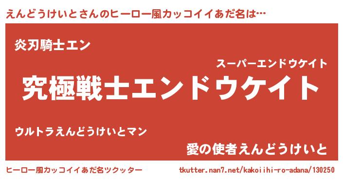 えんどうけいとさんのヒーロー風カッコイイあだ名をツクッター!