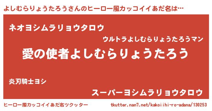 | 女子向けラノベタイトル風あだ名 | 『よしむらりょうたろう恋絵巻』 |
