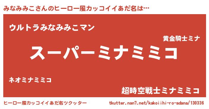 | ファンタジー風あだ名 | 『ミナフェル』『エターナルミナミミコー』 |