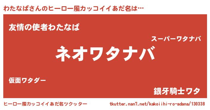 | ヘコむあだ名 | 『わたなば(笑)』『わたっちょ』 |