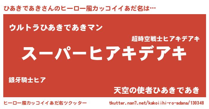 | 男性向けラノベタイトル風あだ名 | 『ひあきであきの憂鬱』 |