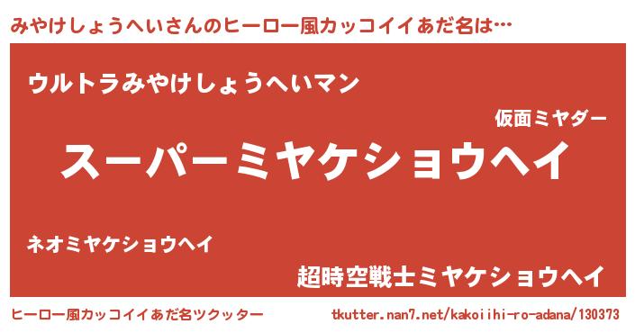 | 欧米人風あだ名 | 『みやけしょうへい・ステッグマイヤー』 |