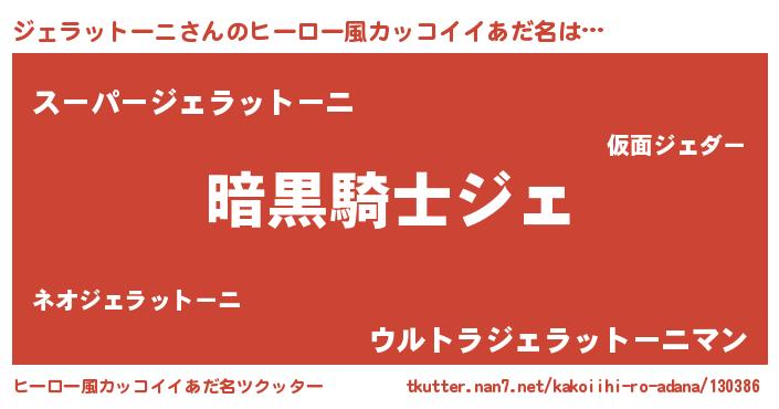 | 男性向けラノベタイトル風あだ名 | 『ジェラットーニスレイヤー』 |