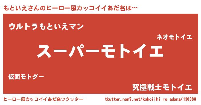 | 胡散臭い通販商品みたいなあだ名 | 『億万長者になれるブレスレット…その名も「もといえ」』 |